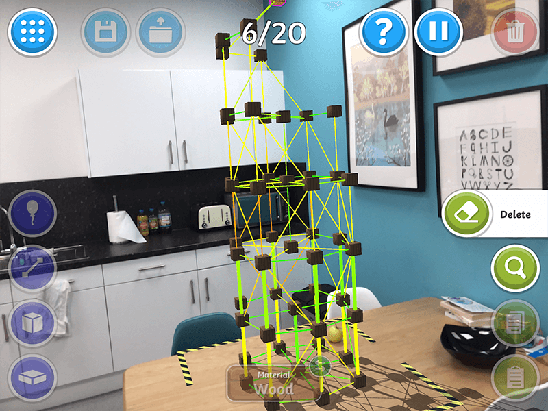 Build amazing towers, bridges and anything you can think of in this groundbreaking augmented reality realistic physics game! Experiment with forces, materials, friction and surfaces in the open-ended Creative Mode before testing your skills in several varied challenges with friends on up to 3 different devices.